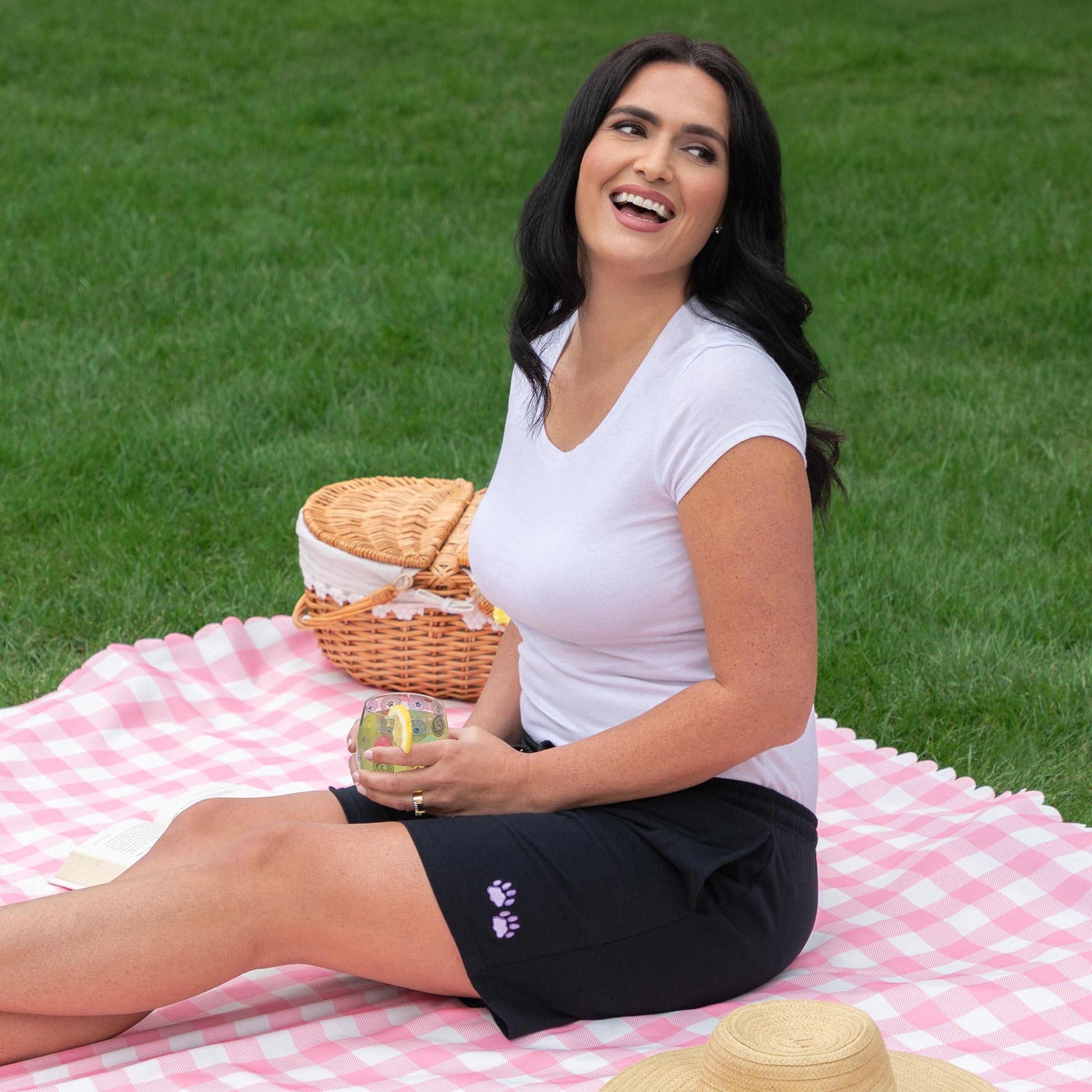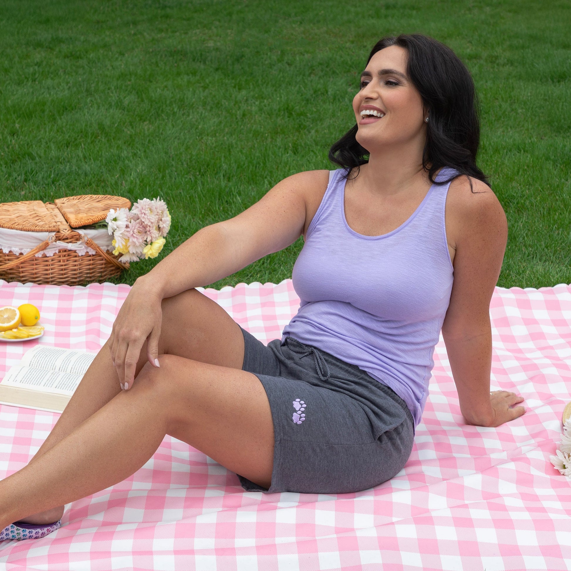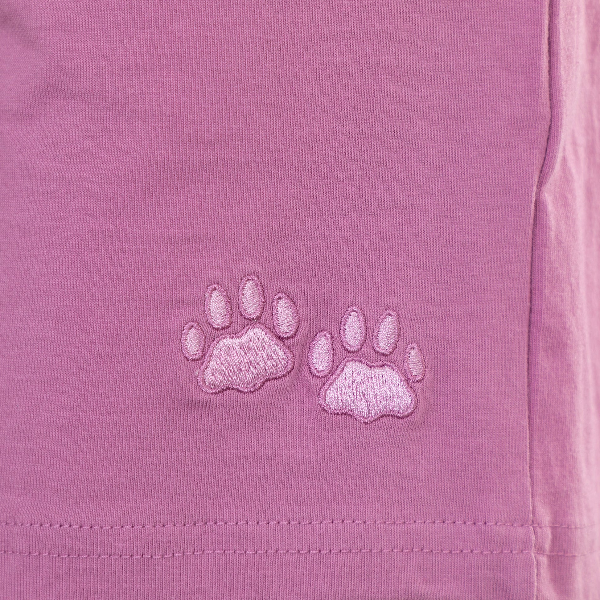 Super soft and incredibly comfy, these drawstring shorts are sure to become a favorite in your warm weather or exercise gear rotation. The 100% cotton shorts feature two embroidered purple paw print on the left leg, signaling your love of animals and their exclusive design. The slimming fitted cut features a stretchy elastic band and a drawstring, as well as two pockets.