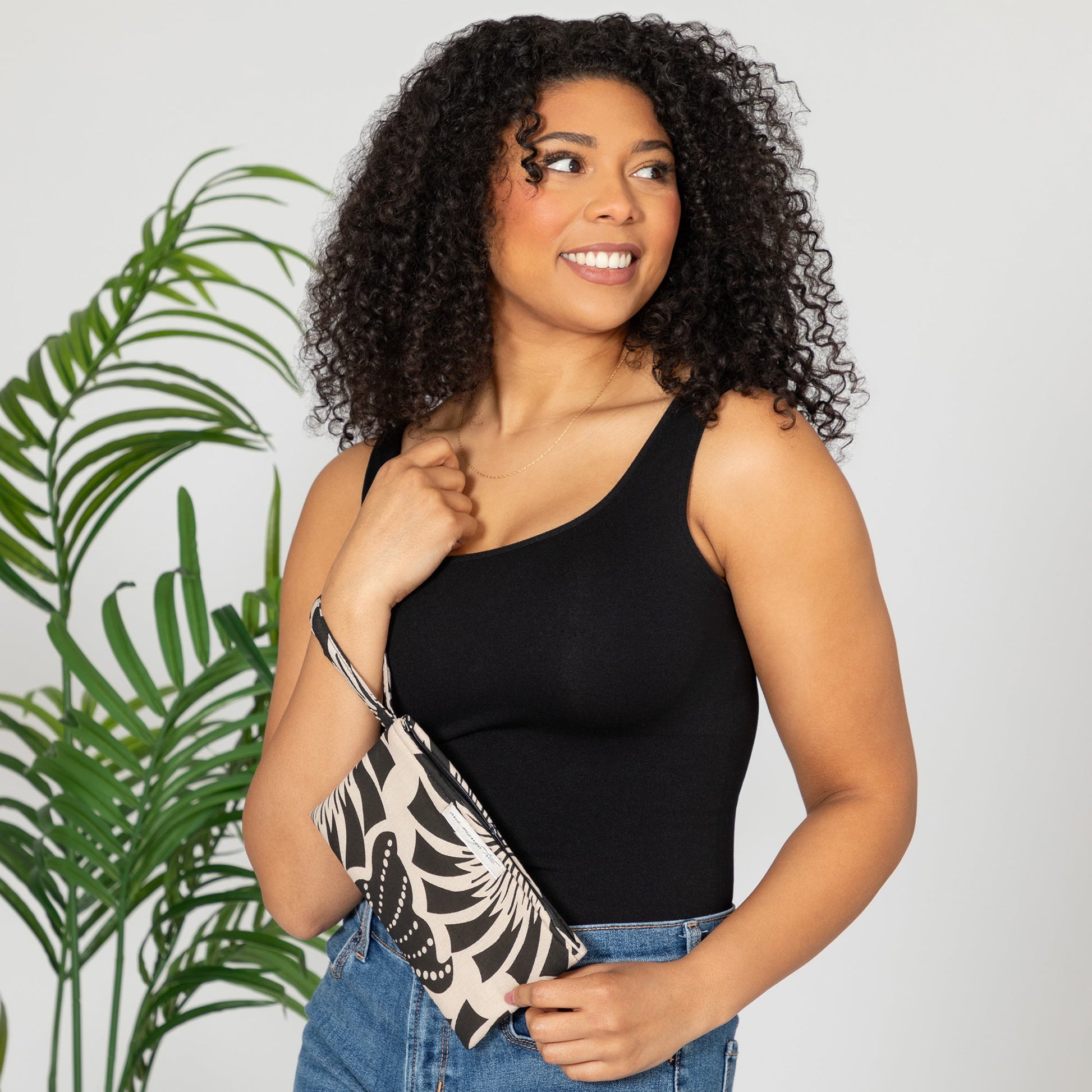 Wherever you go, travel lightly with this convenient wristlet! Handmade by female artisans in Uganda, this wallet-sized accessory keeps all of your essentials at hand, while supporting your love of fair-trade fashion.