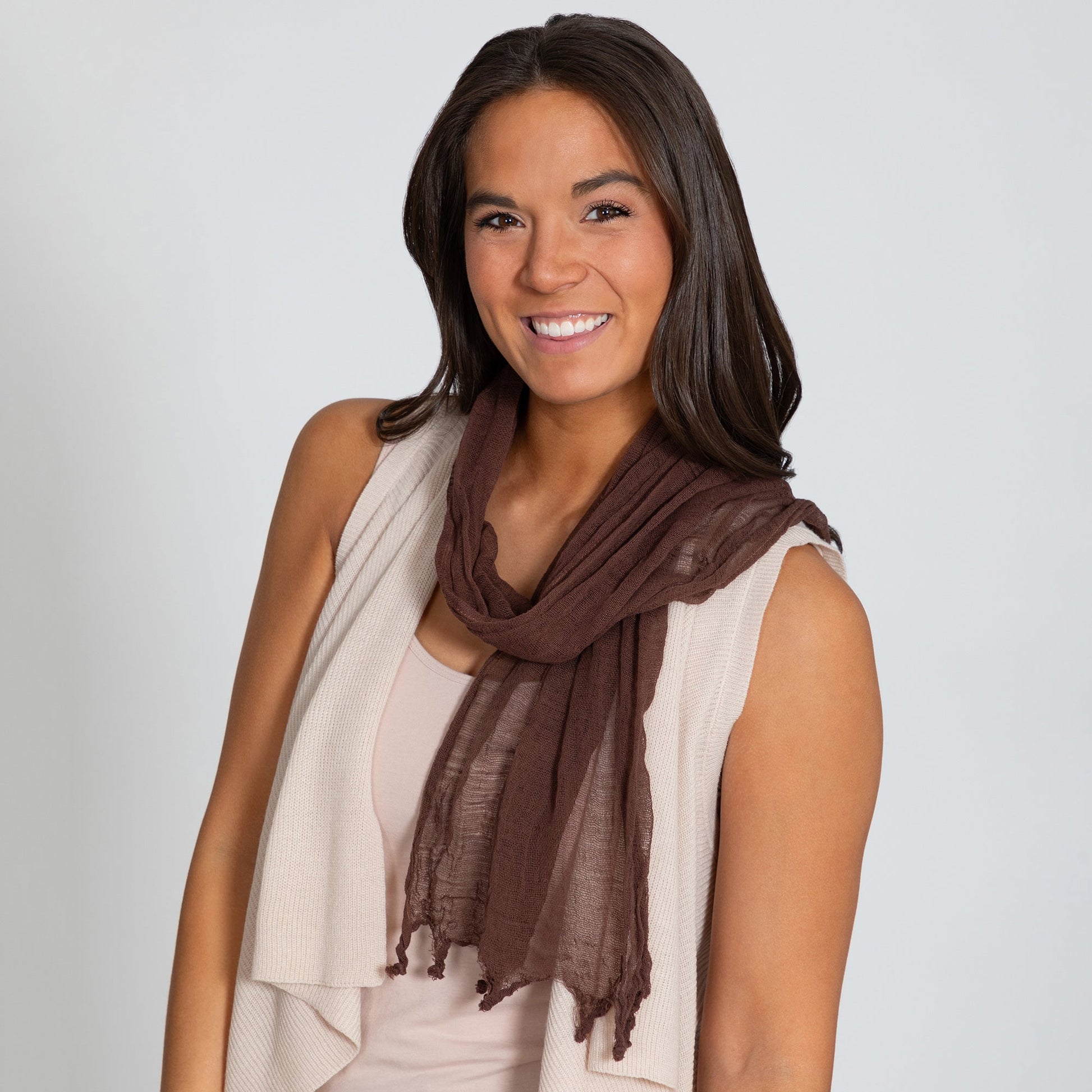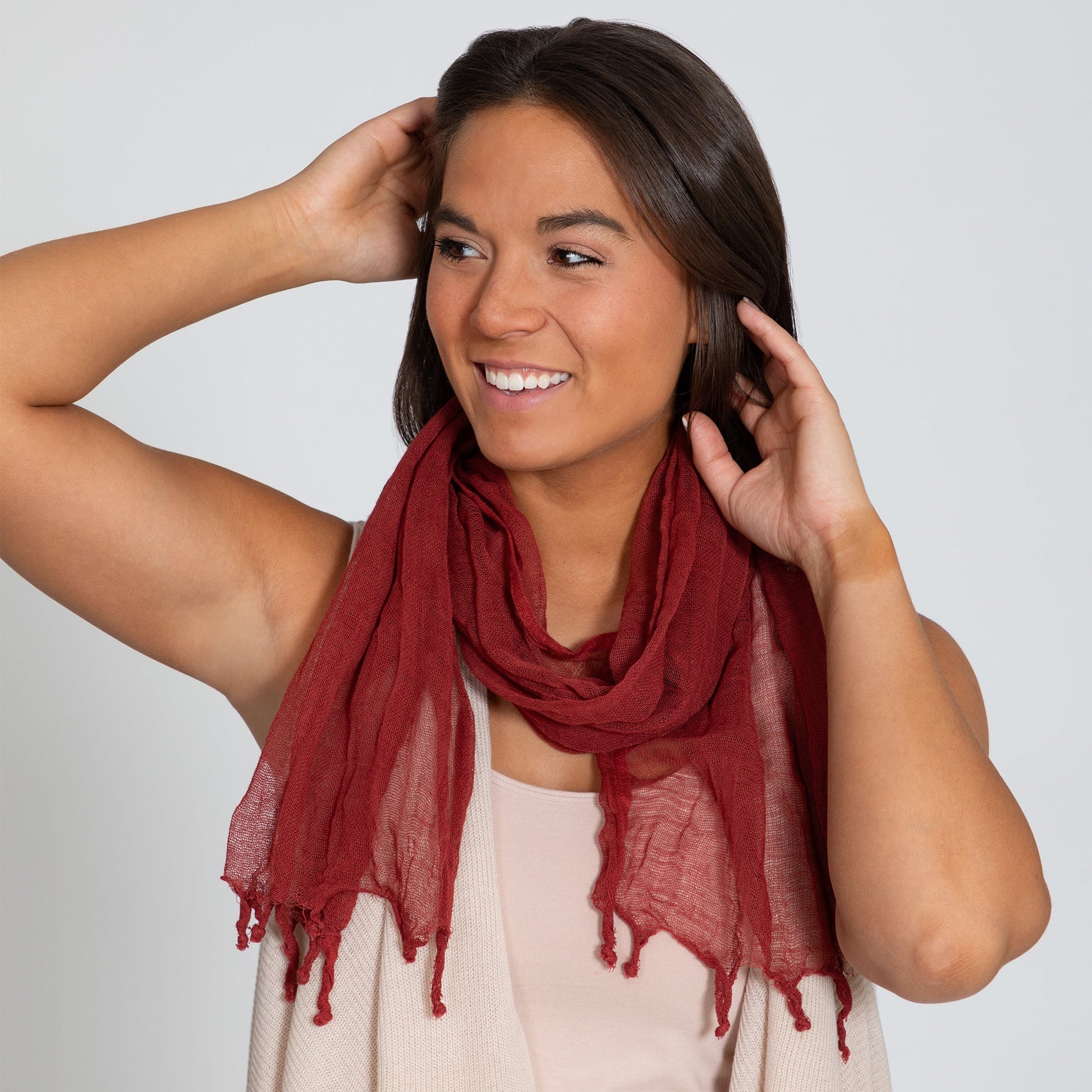 A trendy delight, our lightweight gauzy scarf brings a sublime uumph! to your look, whether you're going casual or dressing to the nines. Handmade in delectable colors, this easy-breezy number is a winning finishing touch.