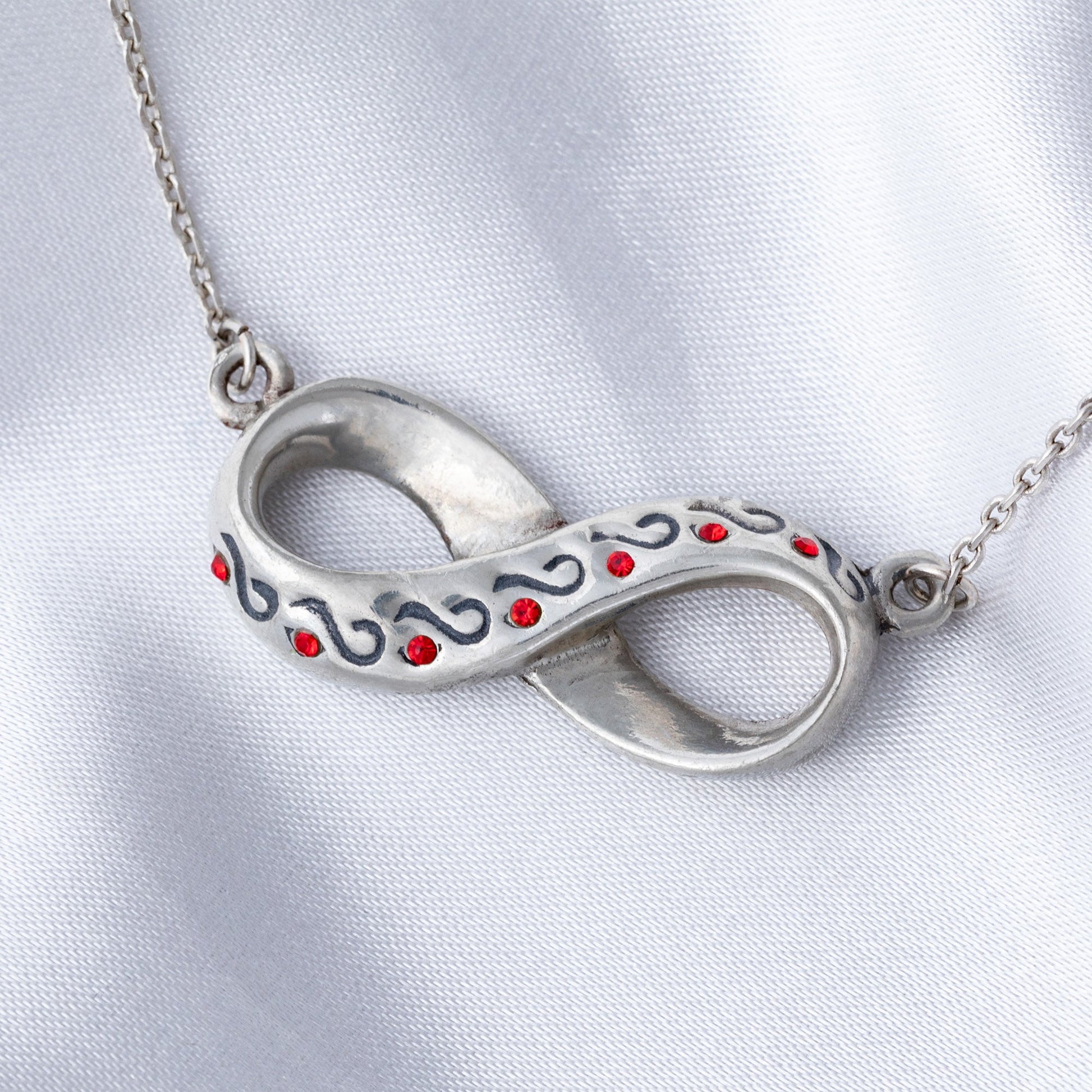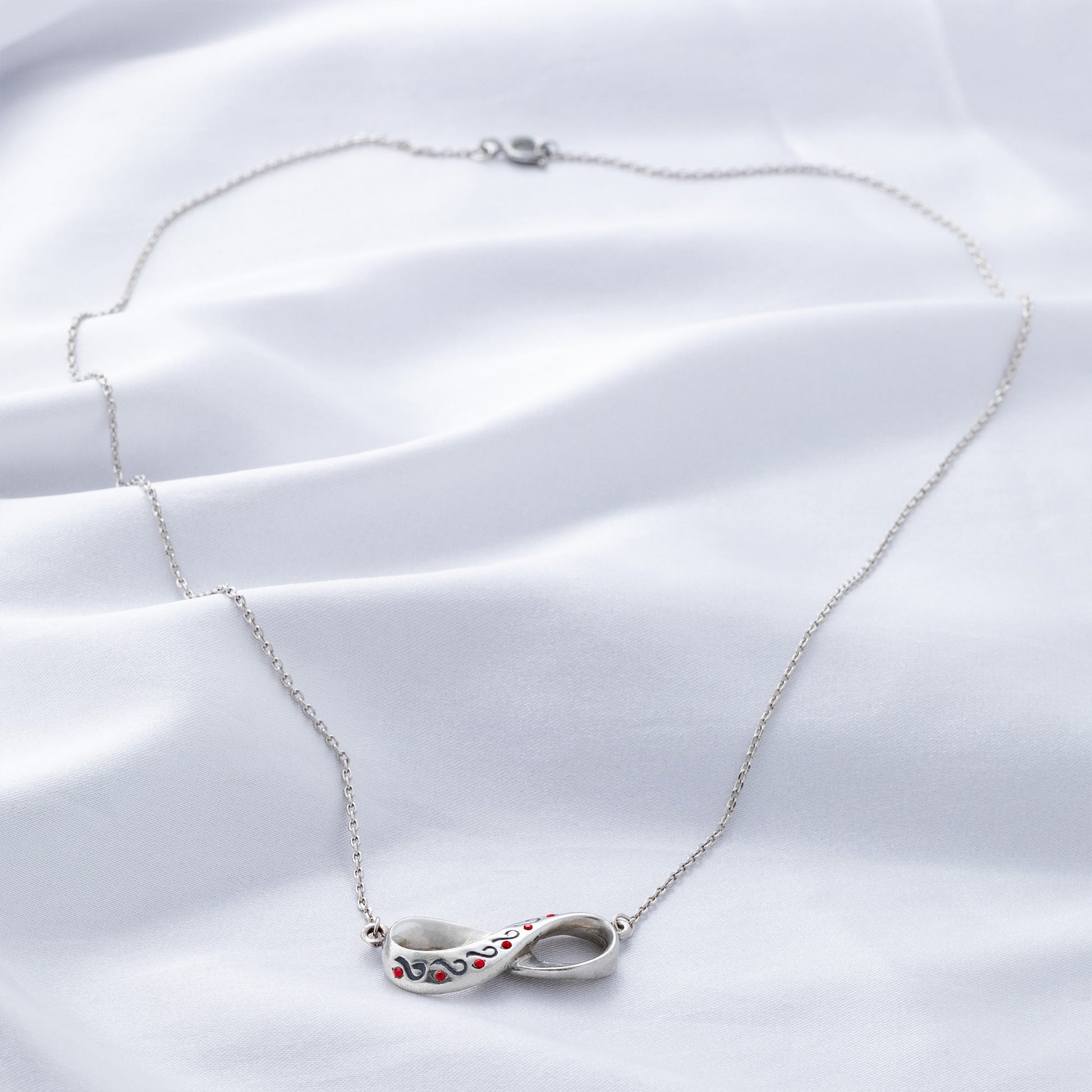 Share "Infinite Hope" with those living with diabetes. The front of our infinity pendant features a parade of ribbons with red crystal accents, while the back bears a message of inspiration for the cause.