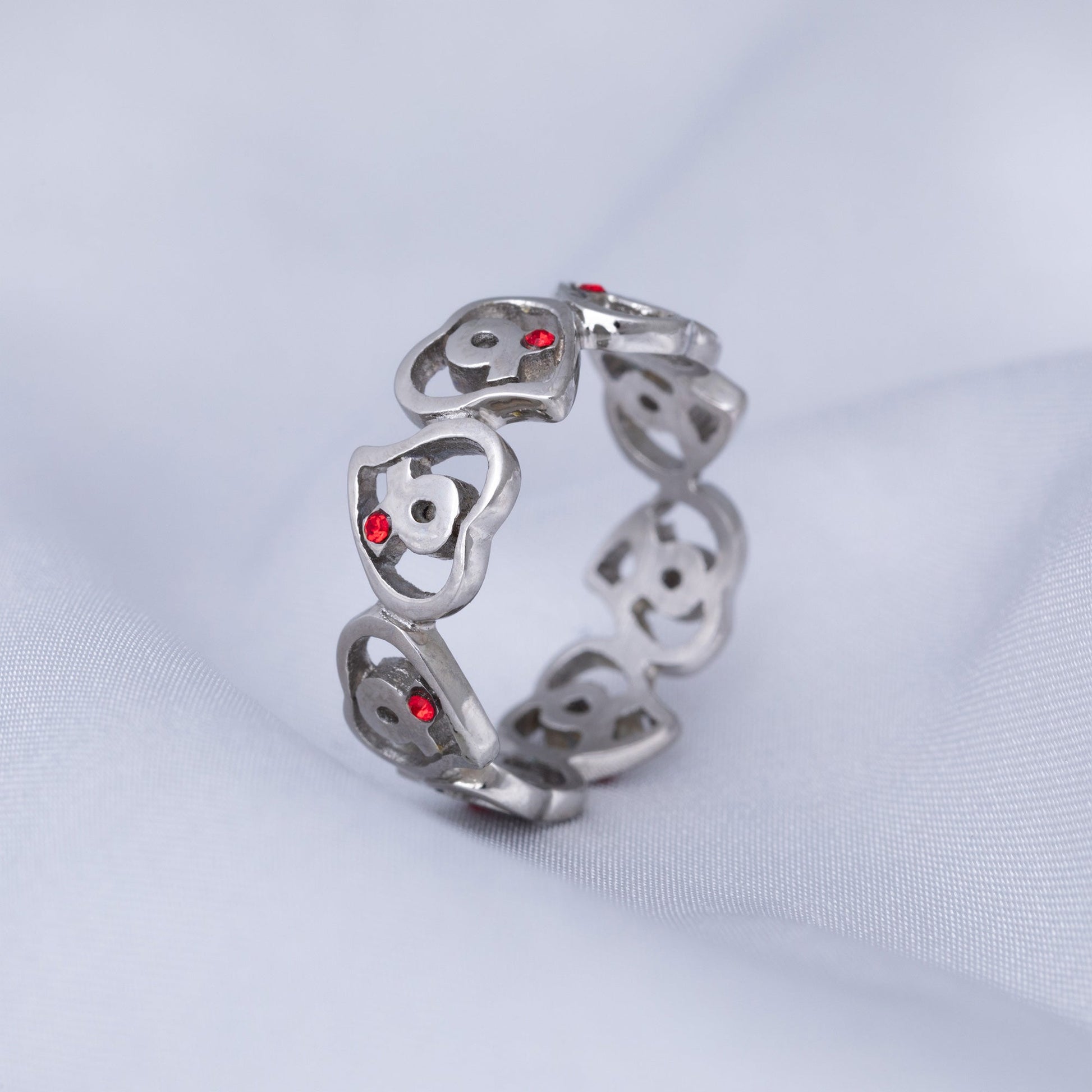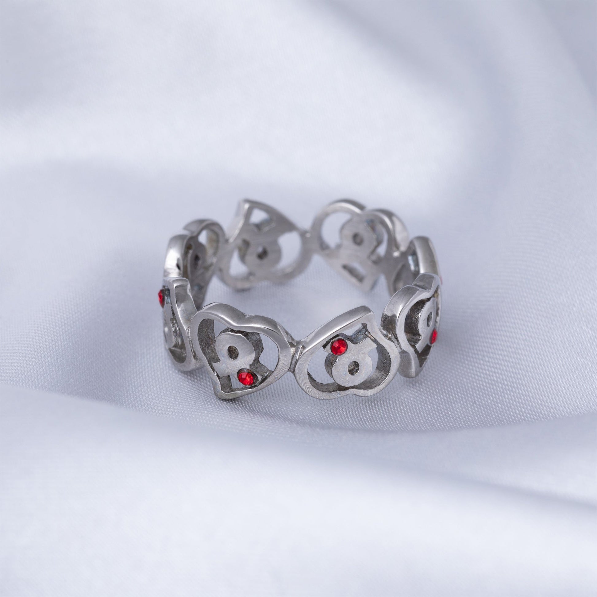 Share your love for the cause with our stainless steel ring showcasing sweeping heart shapes filled with the crystal-accented ribbon of diabetes awareness.