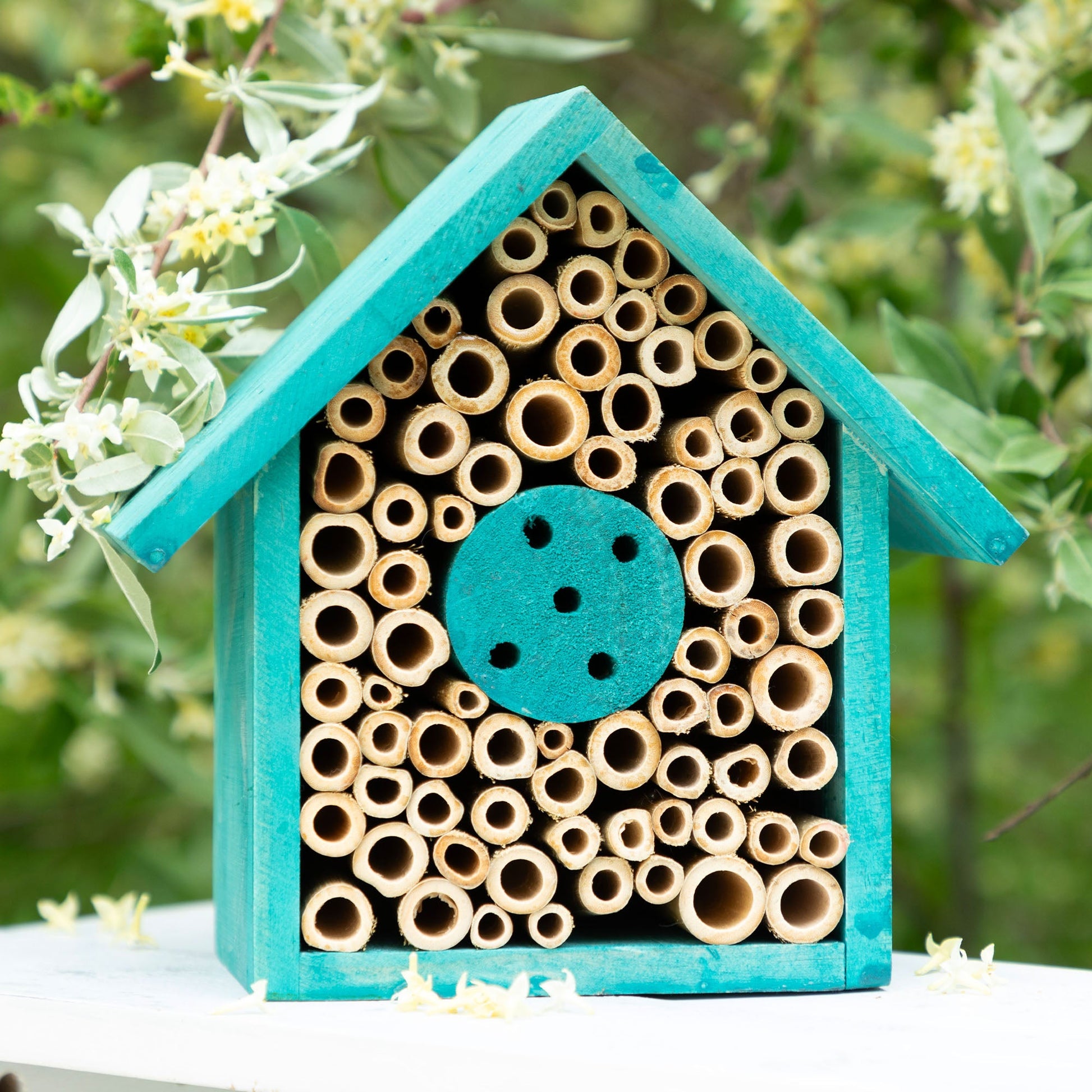 Provide a safe place for mason bees to build their homes with this small but impactful wooden house. Once in use, the bees lay their eggs within the tube structures, and seal them up with mud. Then, in the early Spring the young bees emerge from the tubes. Females will later return to the house to lay eggs in the future for the cycle to continue.