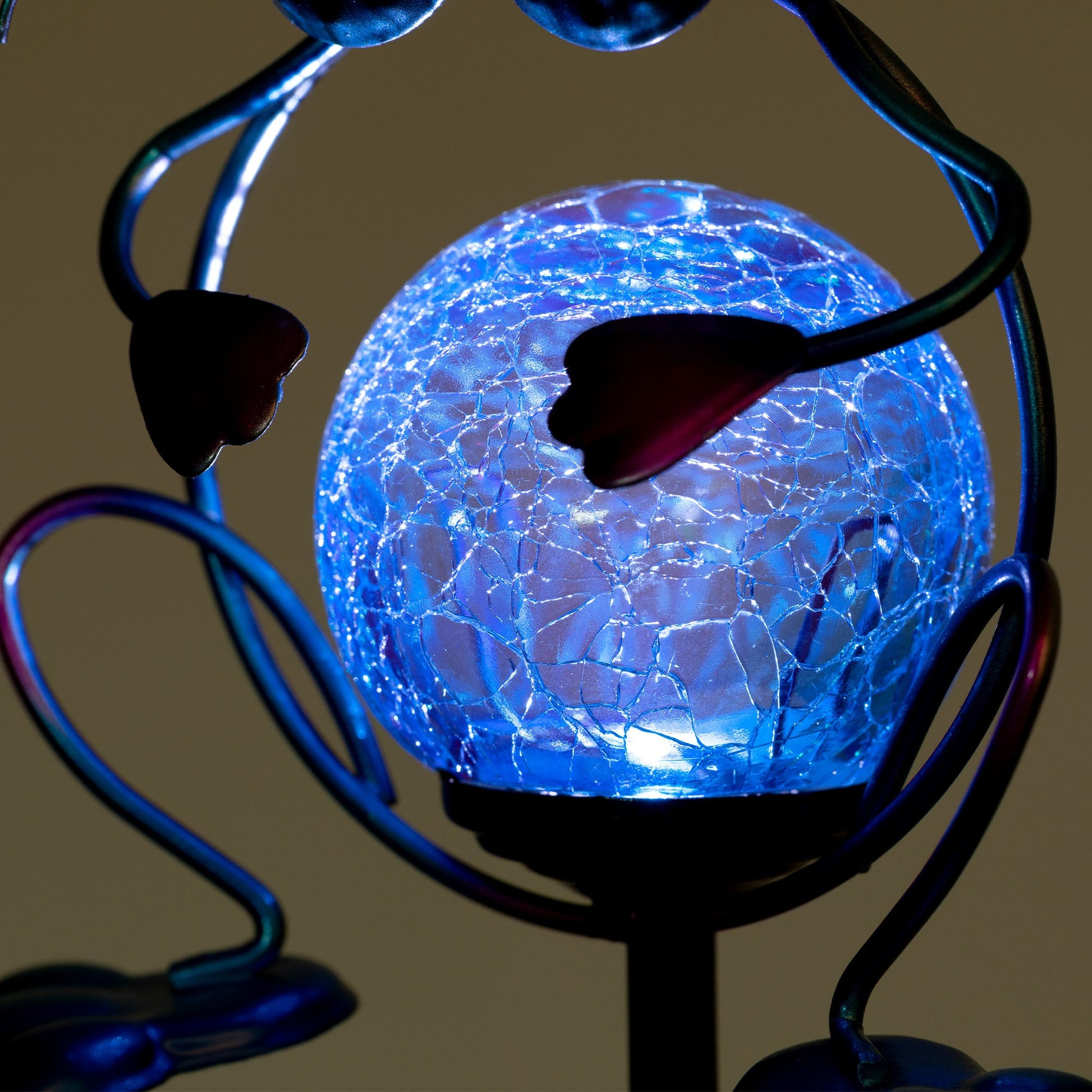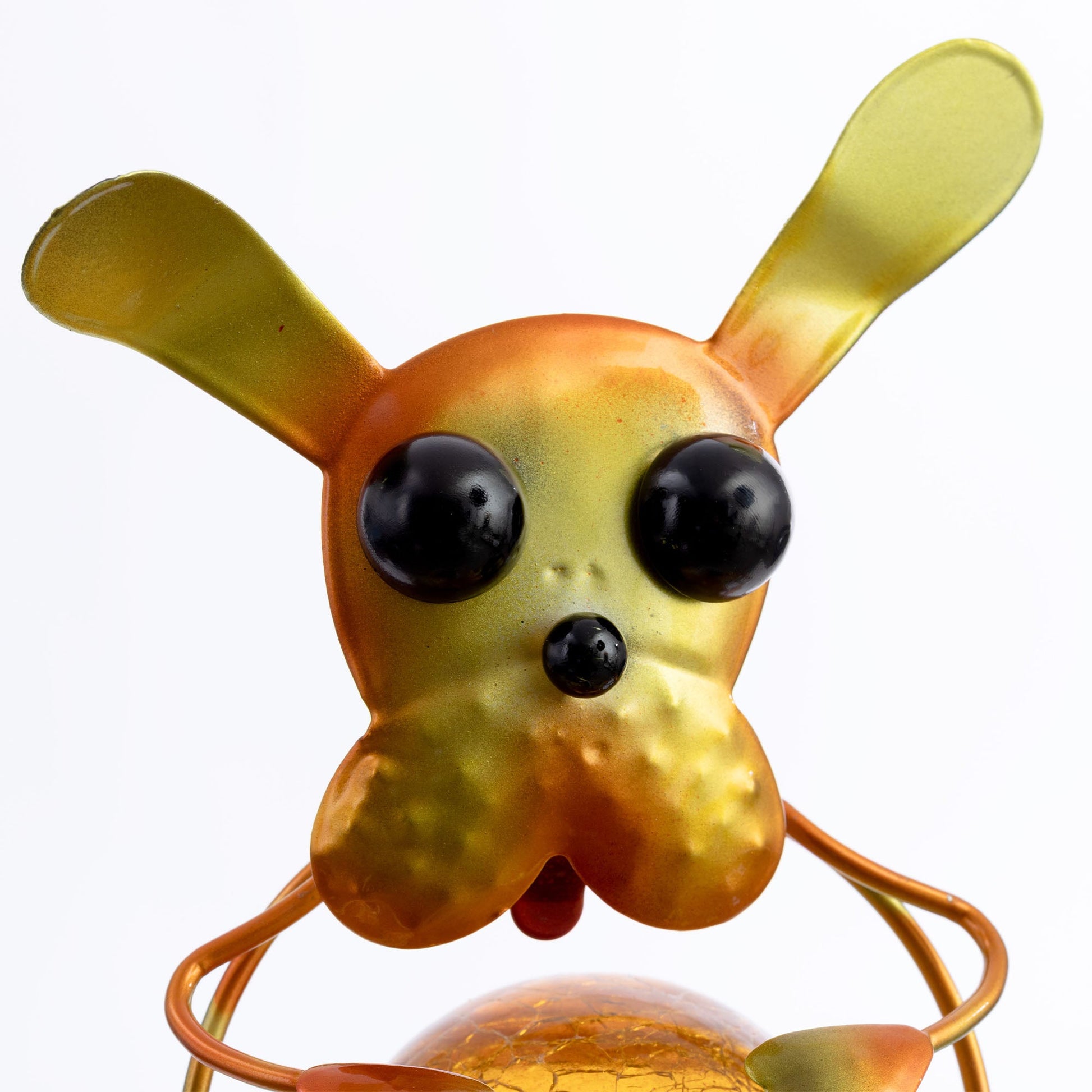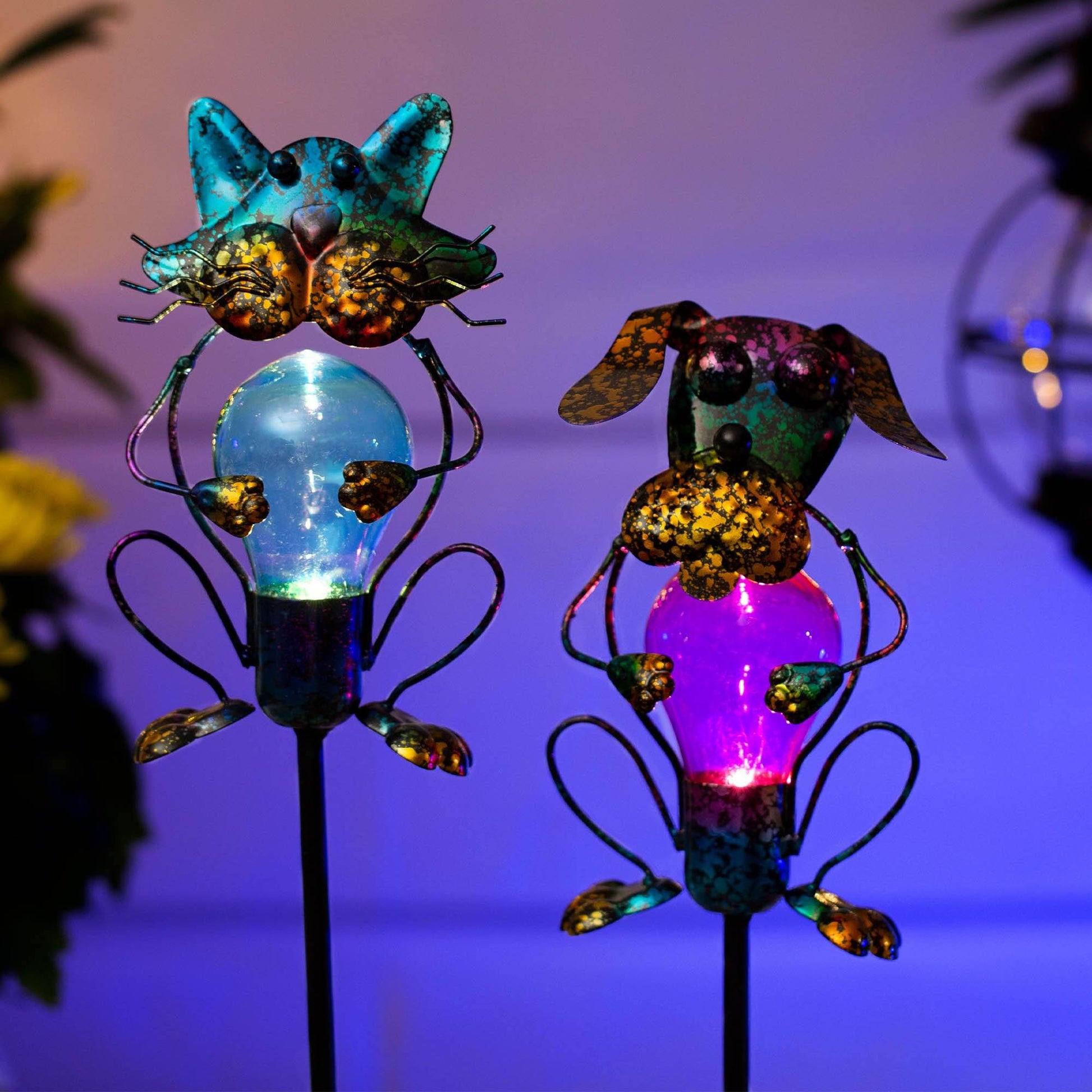 Your perky-eared pet lights up your life, and now this colorful critter lights up your yard and garden too! Easy to assemble and plant firmly in the ground, simply adjust the solar panel and flip the switch underneath to prepare this light to emit a soft, dreamy glow. Made with a colorful metal pet silhouette, and a solar light within the bulb which shines softly in the dark.