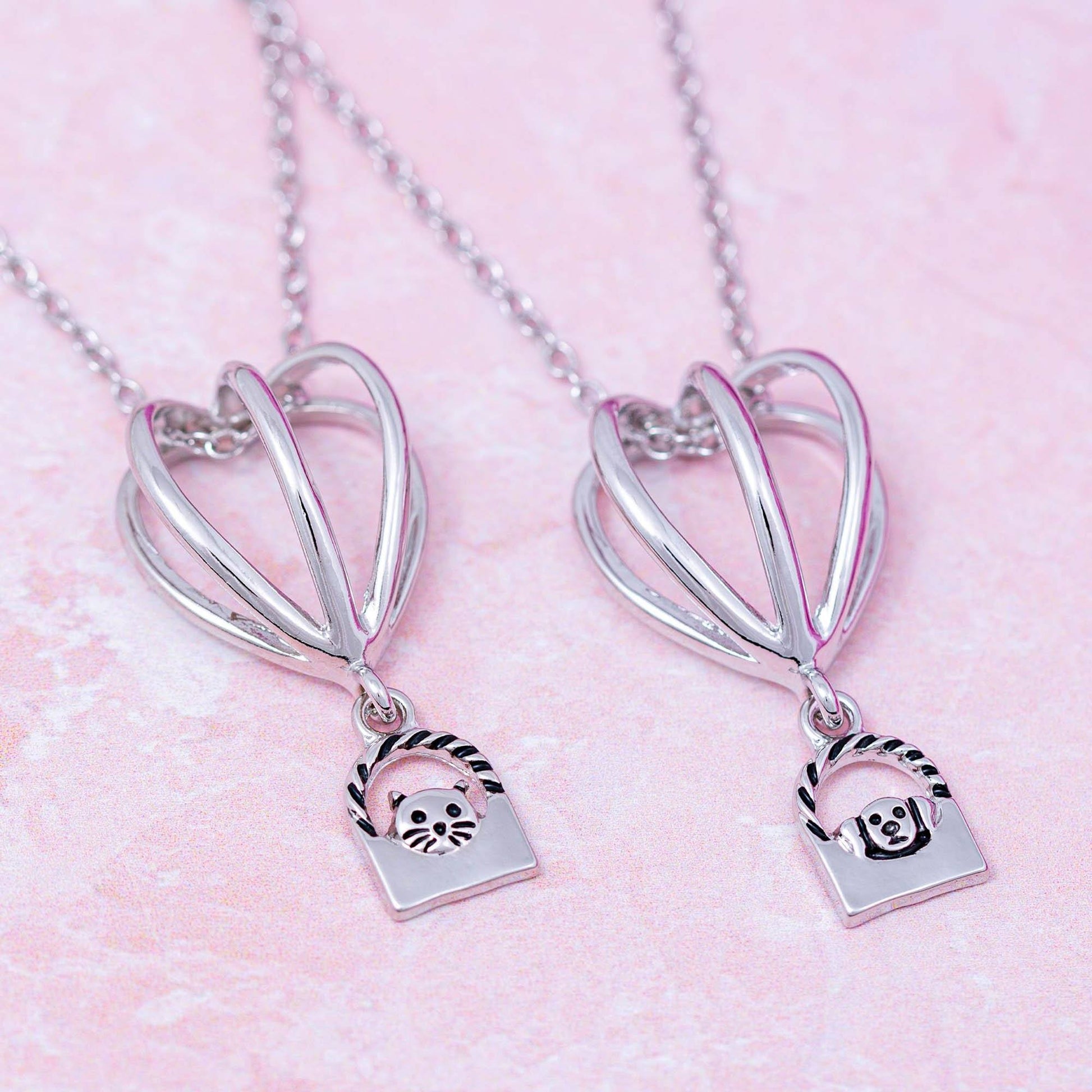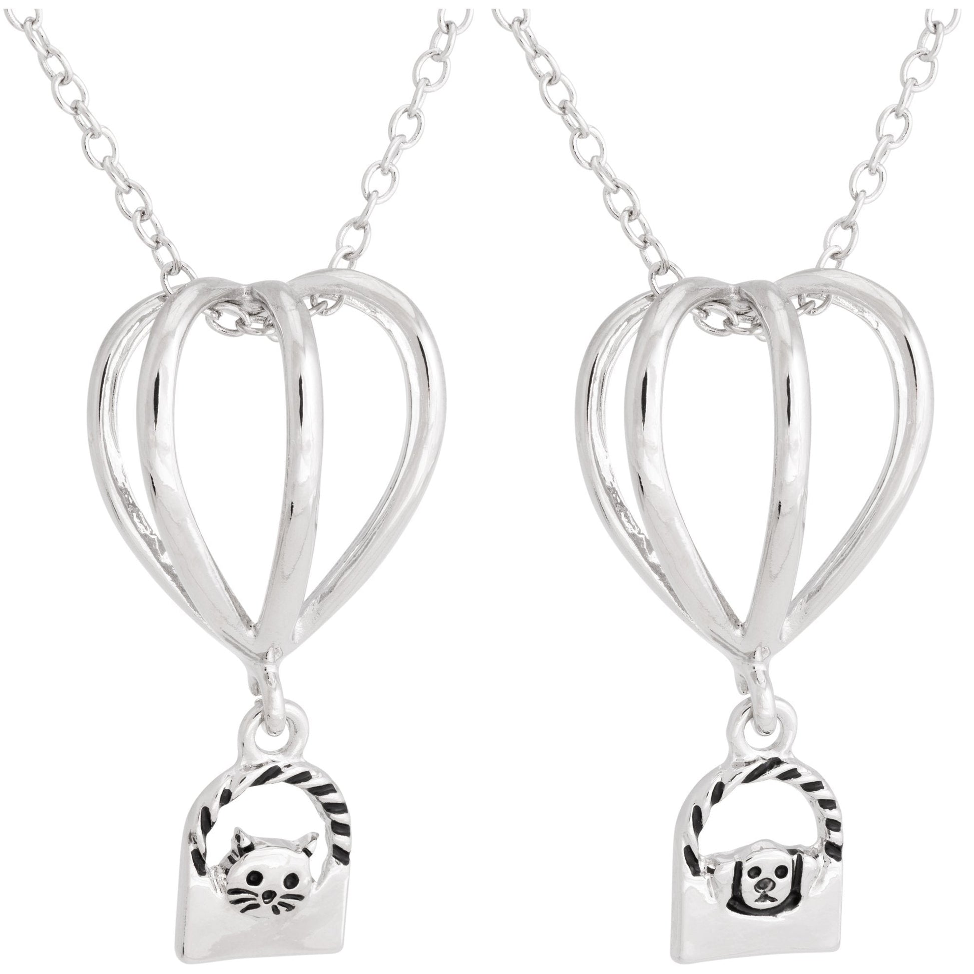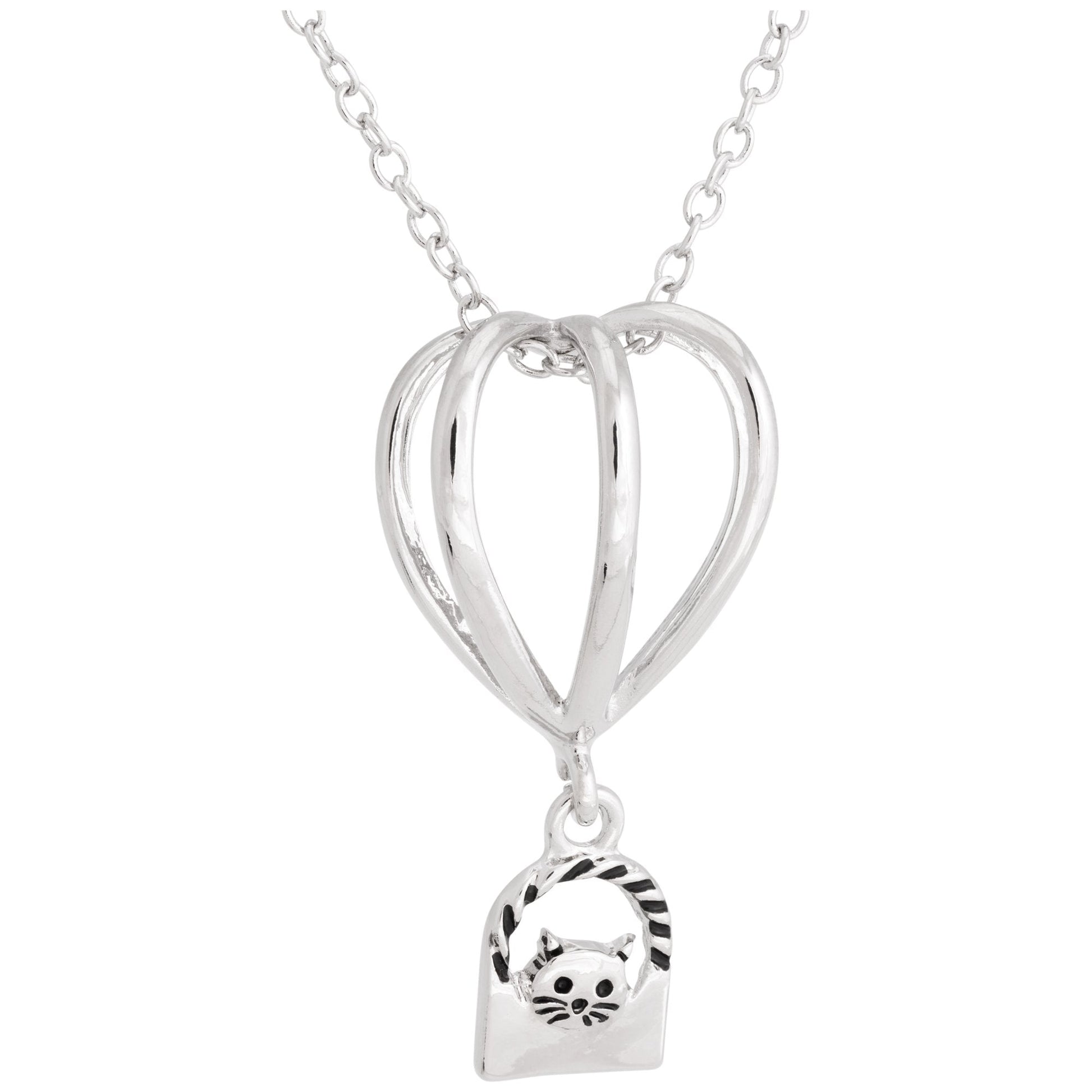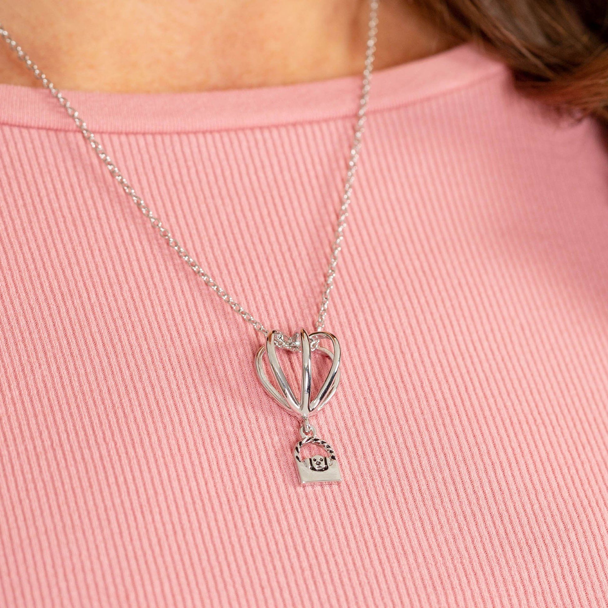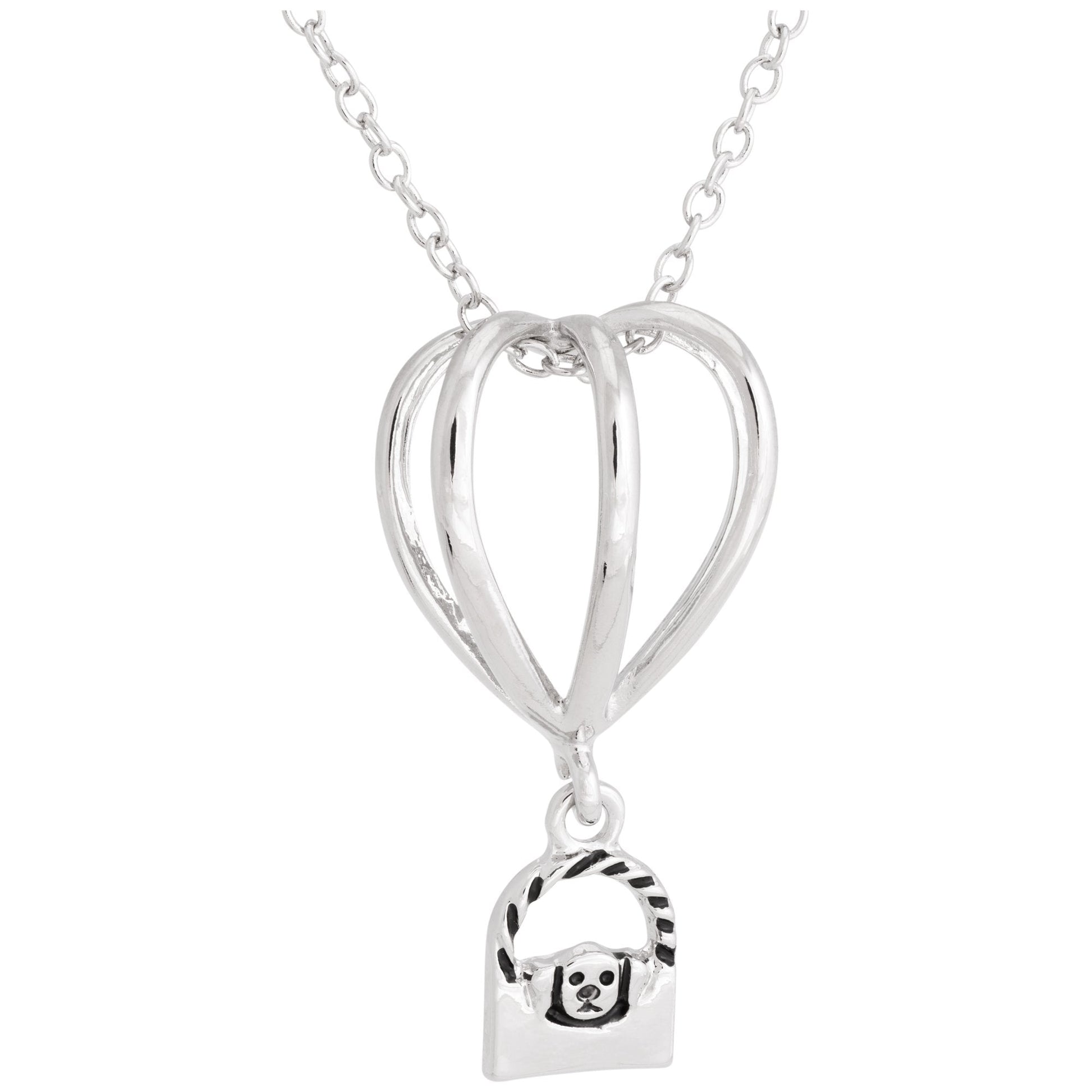 Floating on a silver-tone chain, this hot air balloon pendant is a sweet way to carry your furry friend with you wherever you go! Floating in the basket below is a whiskered kitty or floppy eared pup, showing your animal-loving spirit in a shining silver-tone design.