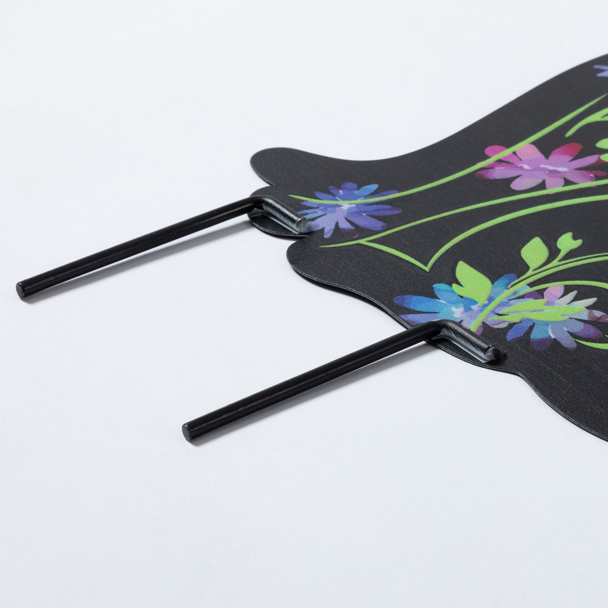 Bursting with cut-out flowers and paw prints, this classic iron garden stake is a sweet animal addition to your garden or large flower pot! Made with a timeless black iron finish or a pop of color and an undeniably adorable shape. The flower dog/cat options feature subtle glow-in-the-dark accents throughout the design!