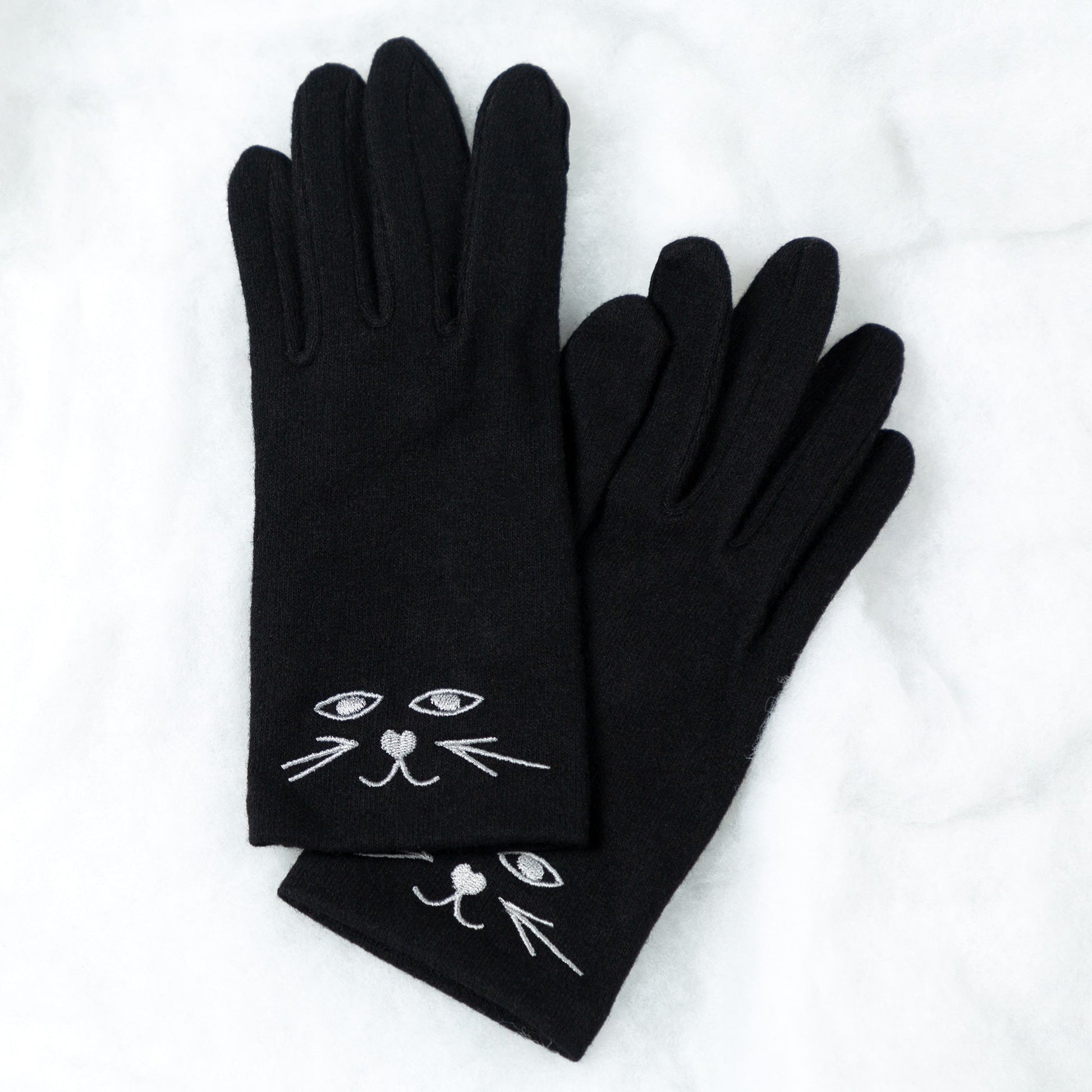 Super soft black gloves are accented by sweet, smiling embroidered faces -- cat or dog -- on this undeniably pet friendly pair! Made with touch screen capabilities so you can use your phone or other touch screen devices even in the chilliest of weather!