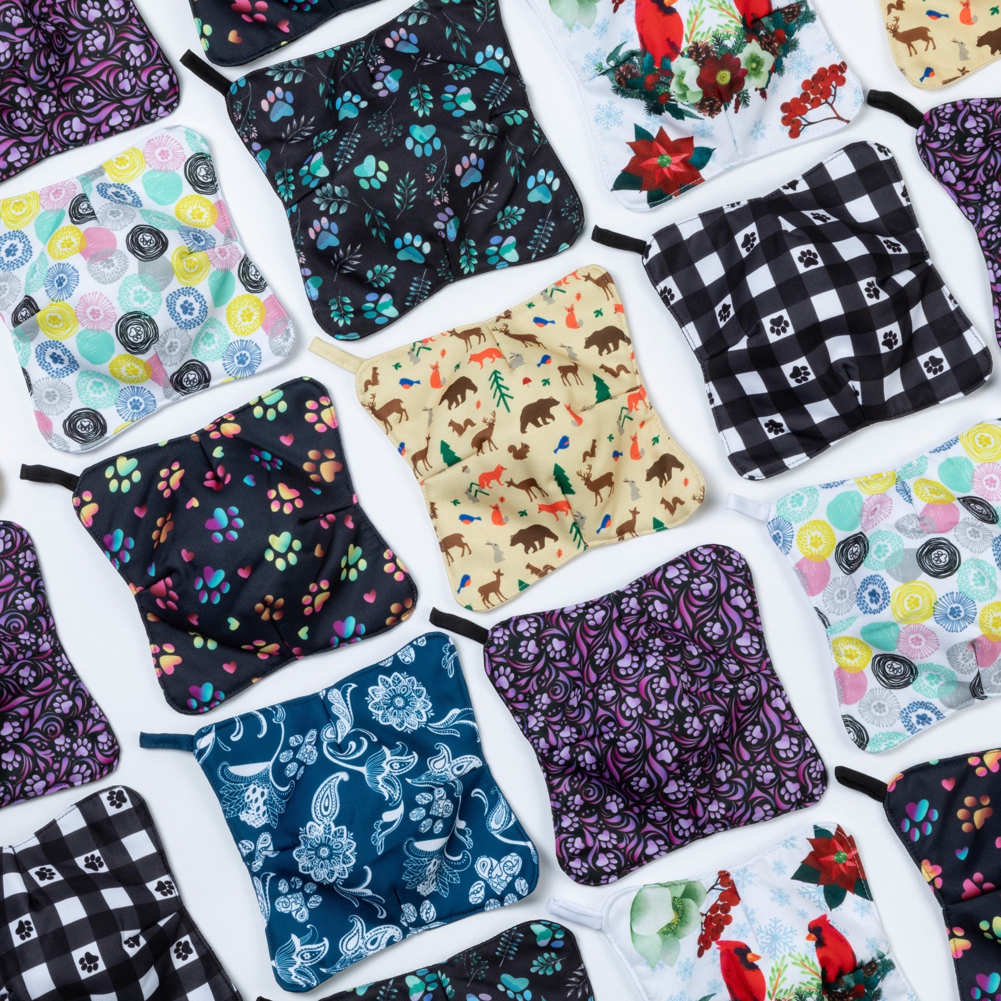Charming Digitally Printed Design: The backside of each cozy features a cute and stylish paw print design, adding a touch of personality and flair to your kitchen while keeping your hands comfortable.