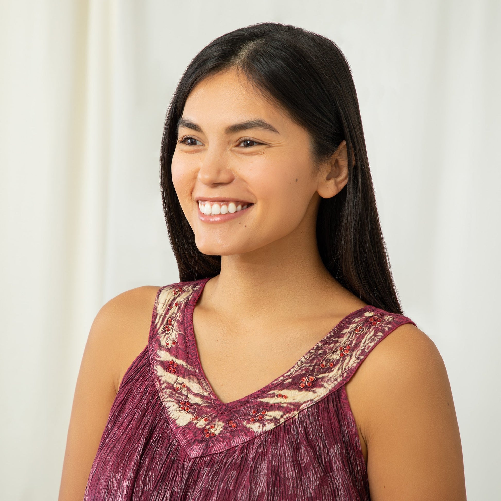 It really does take a village to contribute to each item’s beauty. Every step in the process—from making the fabric, stitching it together, adding embroidery, dyeing the fabric and applying any number of unique prints and designs—highlights the skills and beautiful traditions found throughout the 25+ villages involved.
