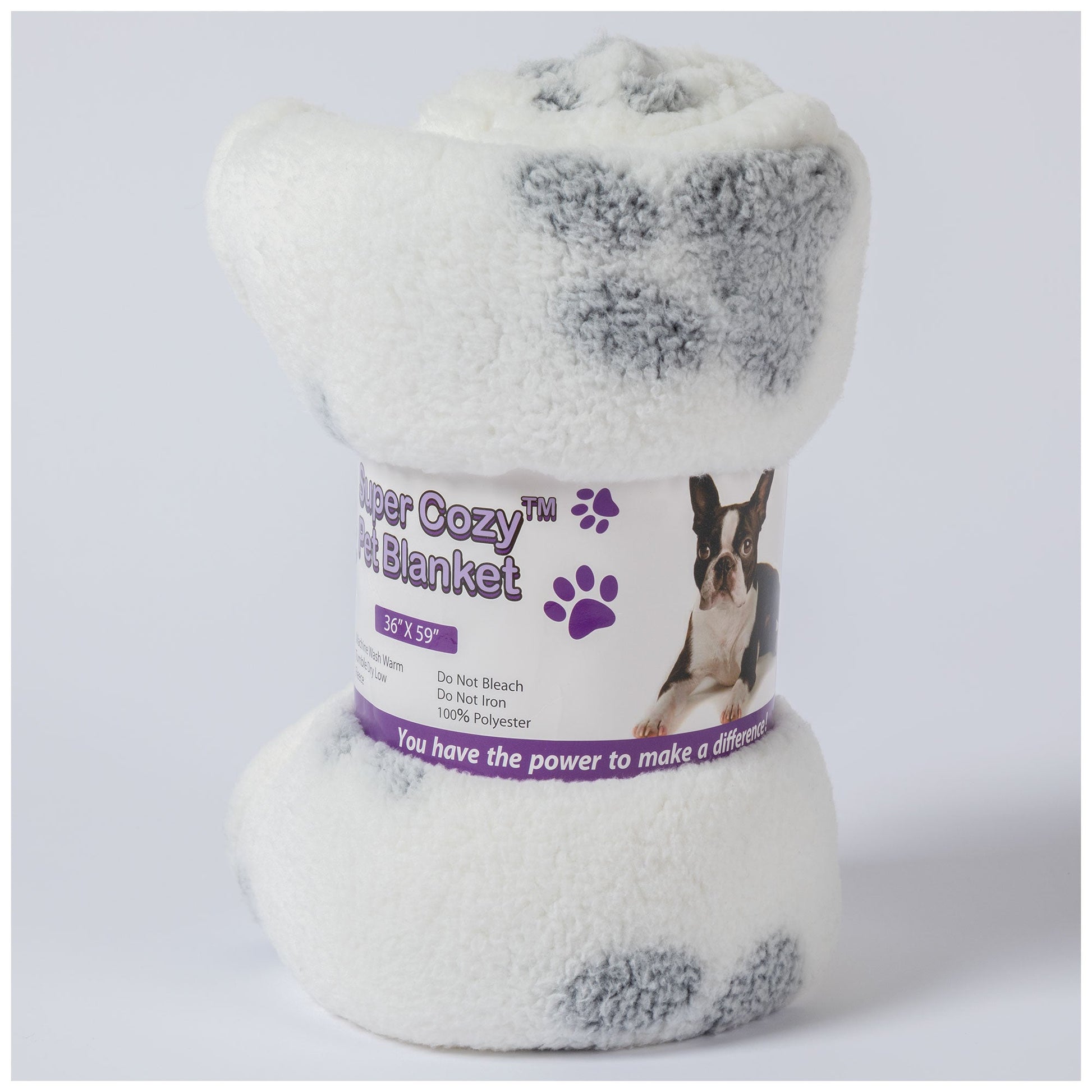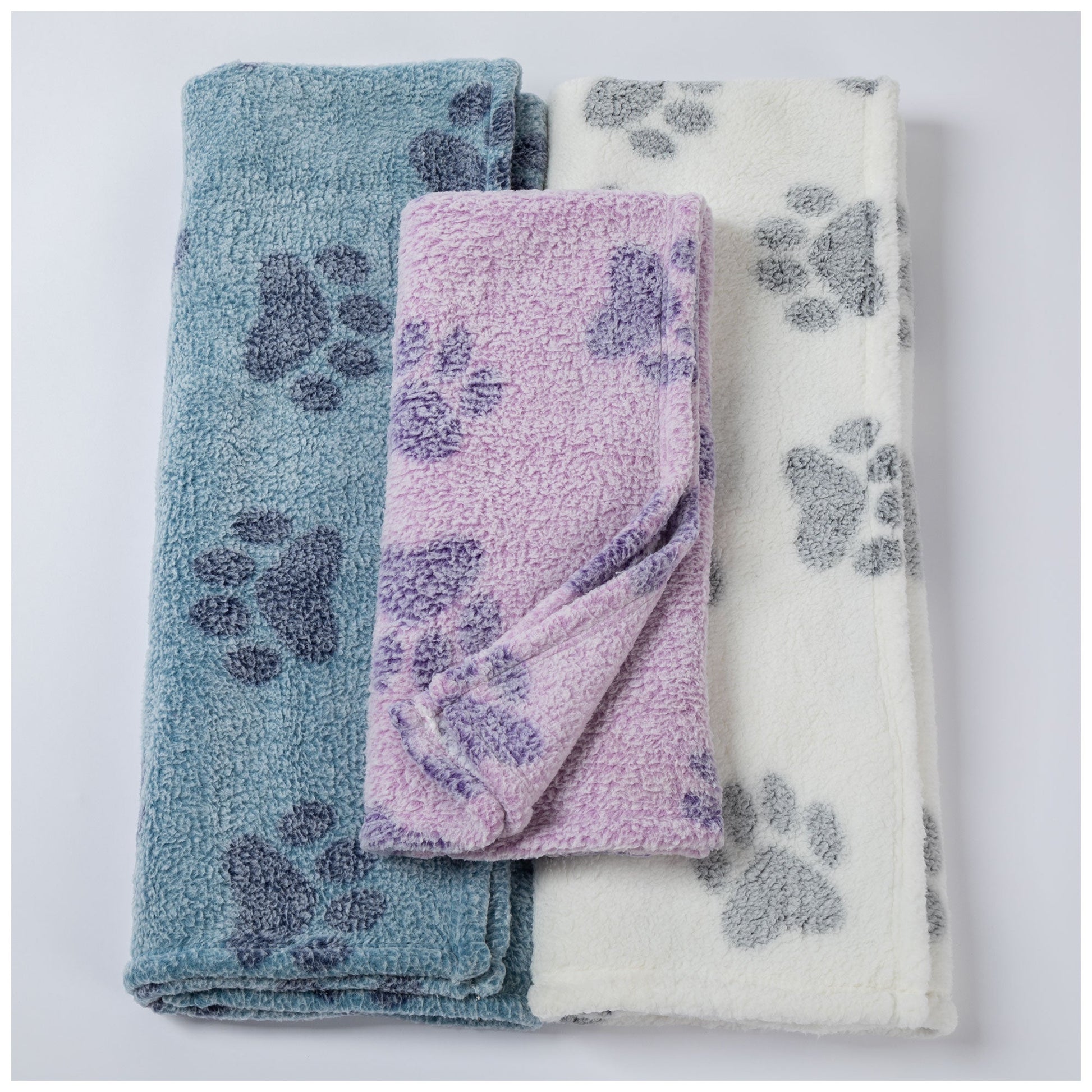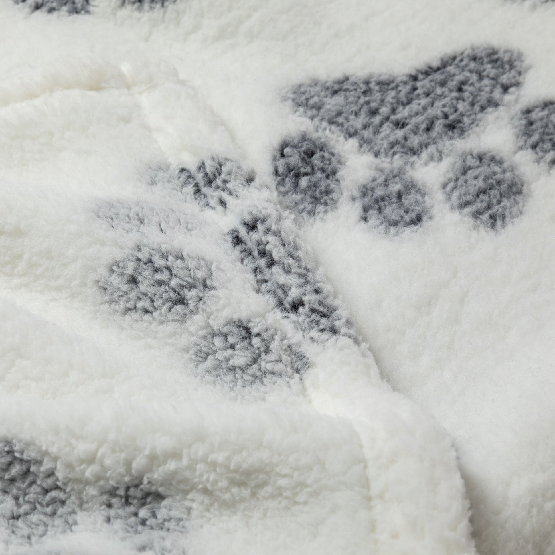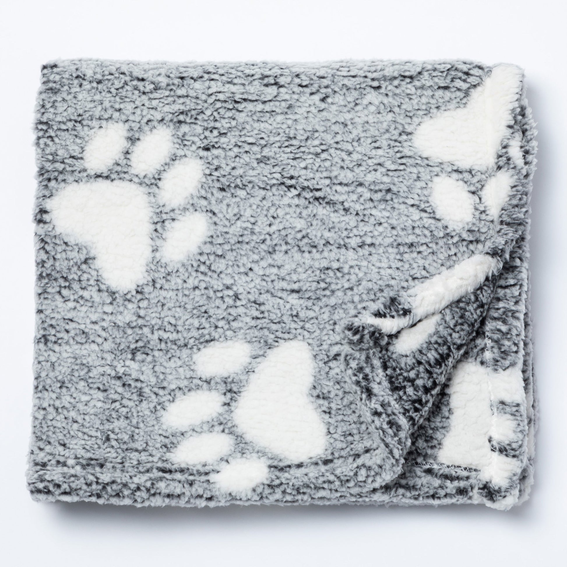 This ultra plush sherpa pet blanket is made with super plush sherpa fleece, making it the softest blanket you own. Woven with pastel colors and a paw print design, the only thing cuter is your furry friend curled up on it!