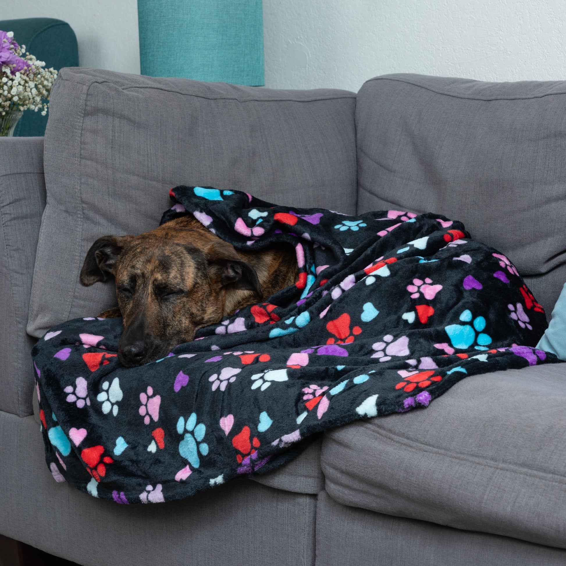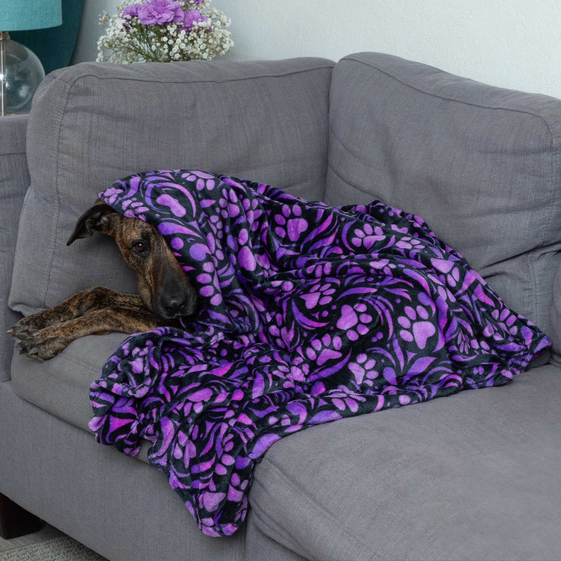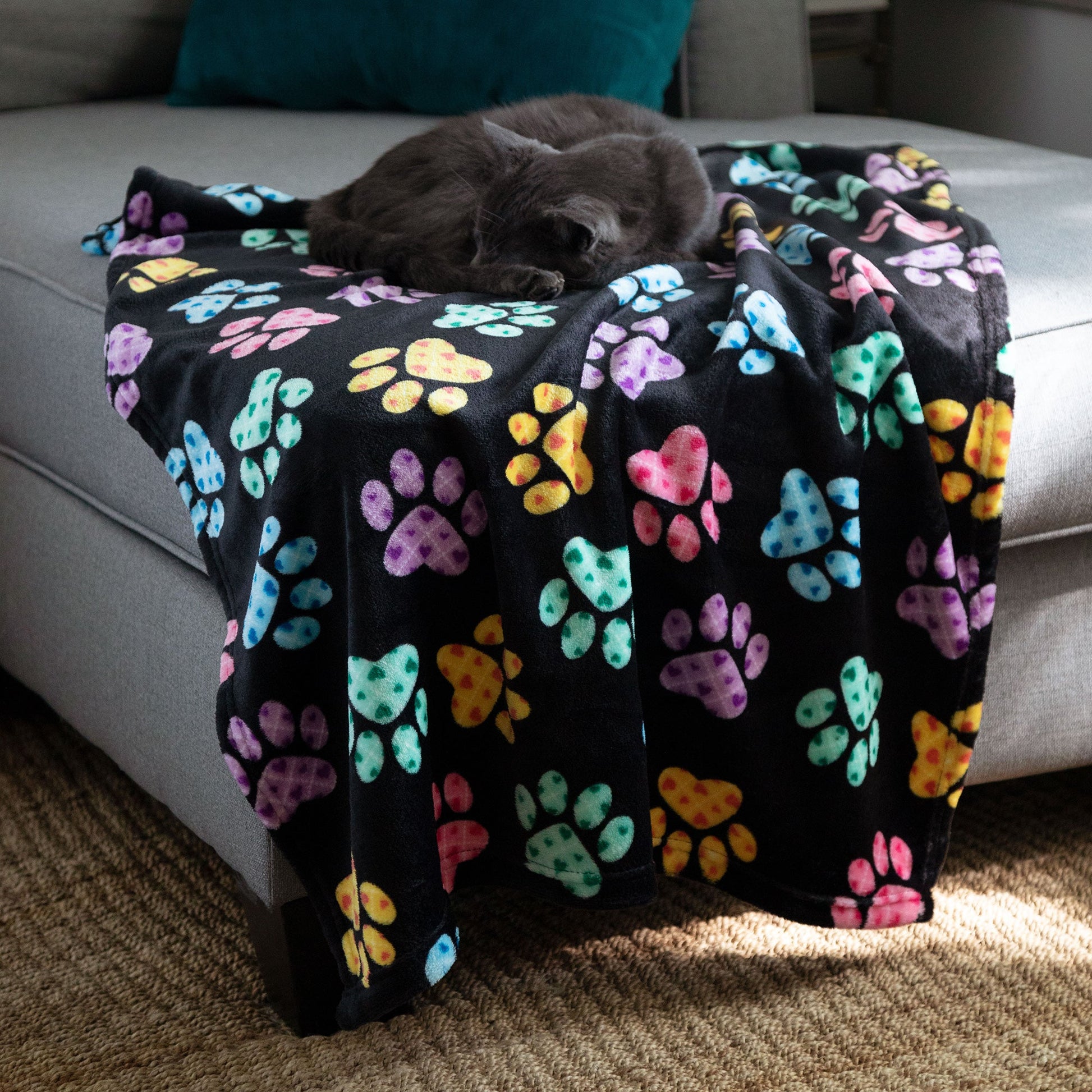 Snuggled up against the Super Cozy™ fleece fabric, this paw printed blanket becomes a place for your furry friend to call their own. Tucked in their crate, or on a sofa, chair, or at the foot of your bed, when this soft blanket is down, your dog or cat knows exactly where to go for their coziest curl-up spot.