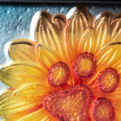 Provide a unique light-up addition to any garden or exterior space. A paw print sunflower design adds a charming decorative touch. Instantly add light, color, and character to any outdoor space with this solar-powered lamp.