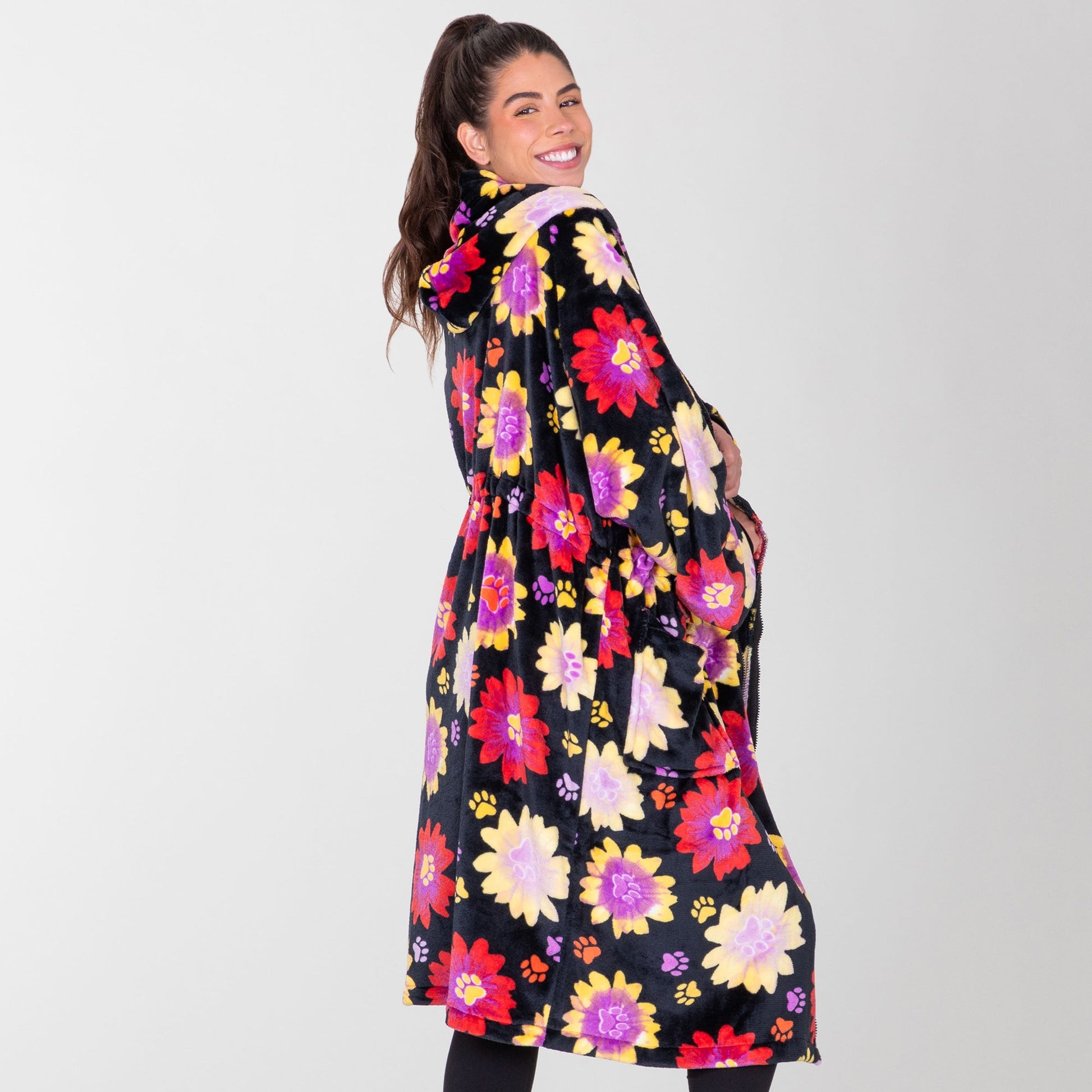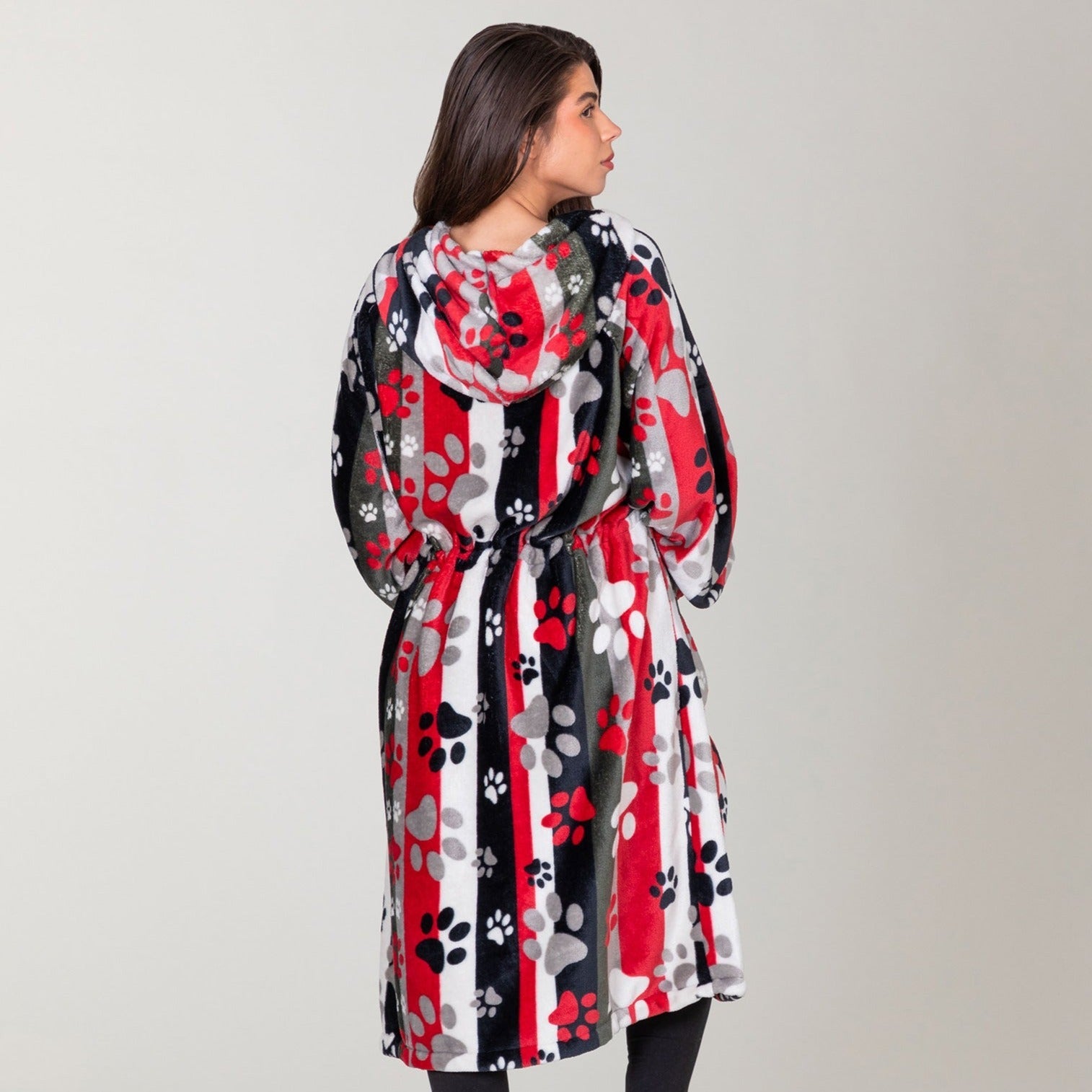 Indulge in the unparalleled comfort of our Super Cozy™ fleece, transformed into the ultimate wearable blanket for those chilly days and nights! Designed to fit most, this wearable fleece blanket is not only incredibly warm but also wonderfully stylish, adorned with charming paw print designs.